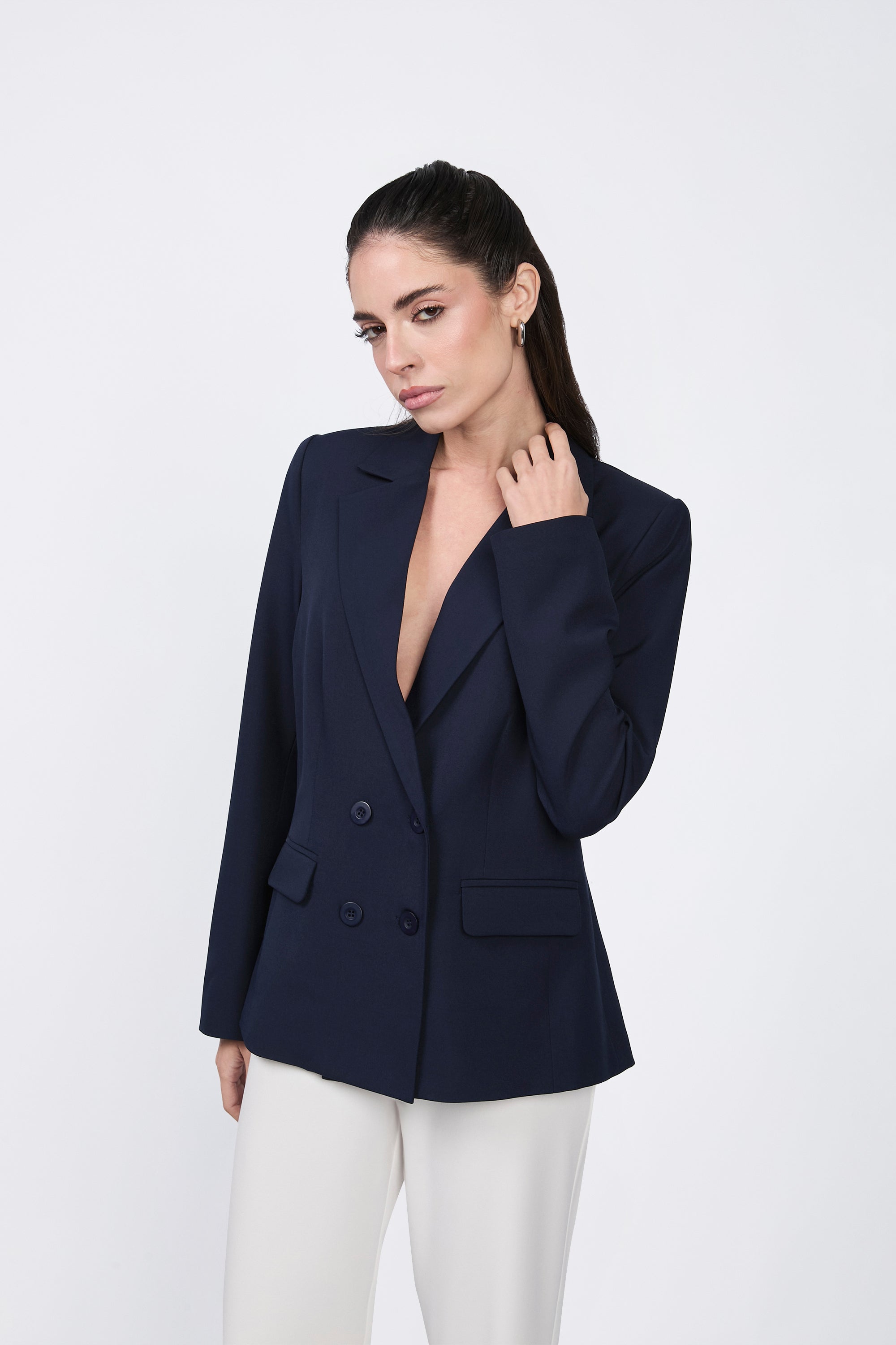 Blazer Daphne cruzado con solapa y bolsillos marino