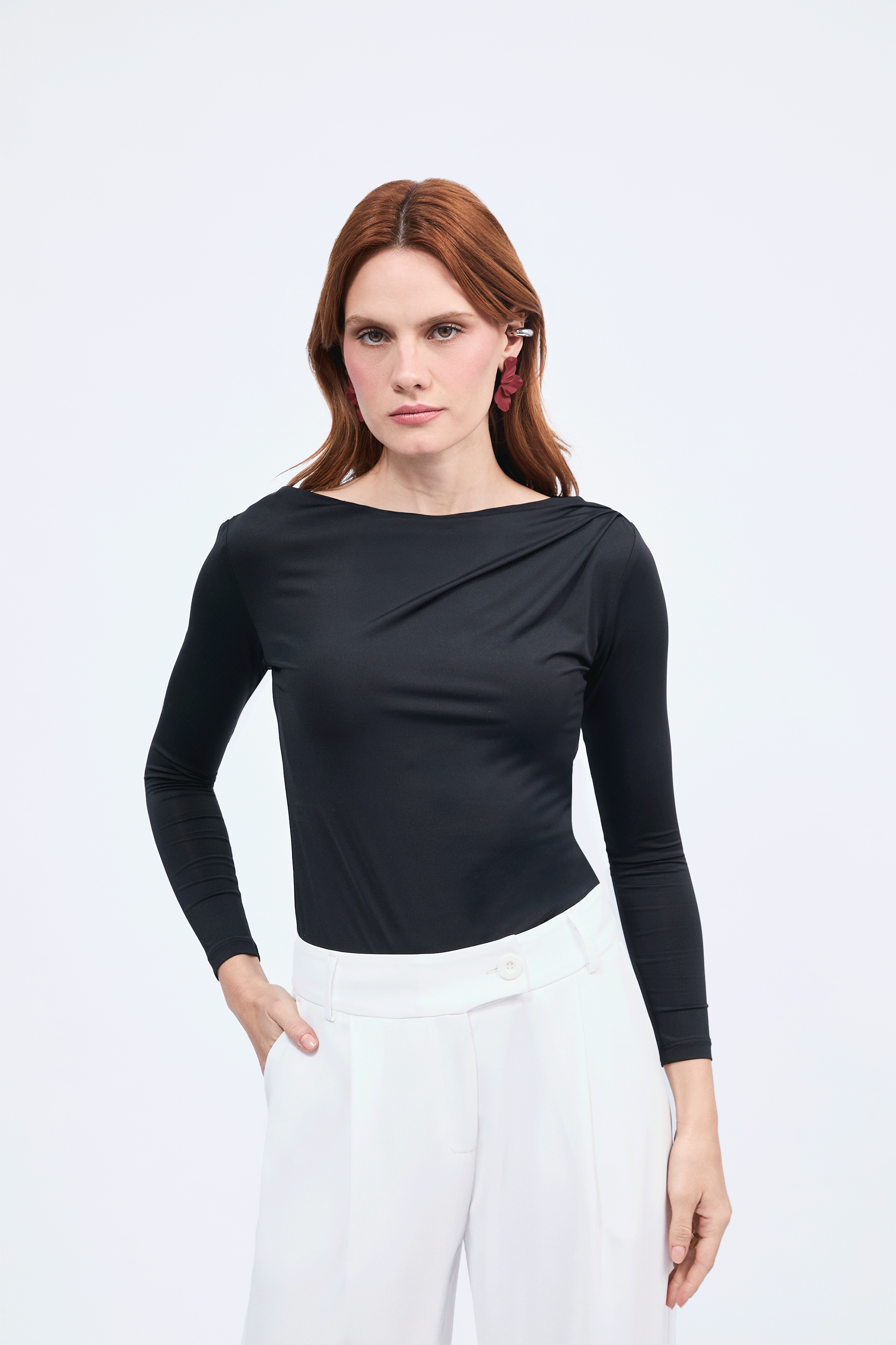 BLUSA JOSEFINA MANGA LARGA CON RECOGIDO PERLA