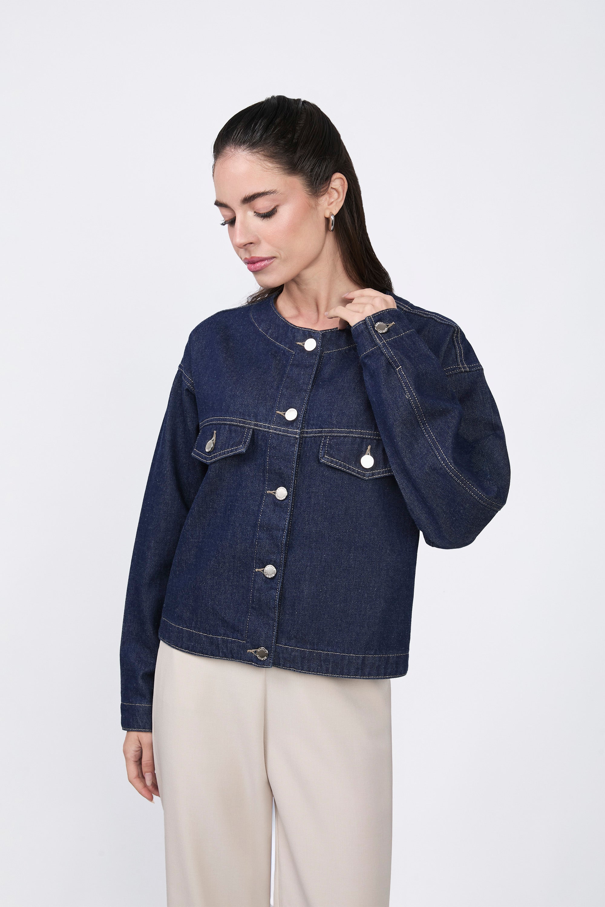 CASACA DENIM CON BOLSILLO INTERNO AZUL CRISTAL