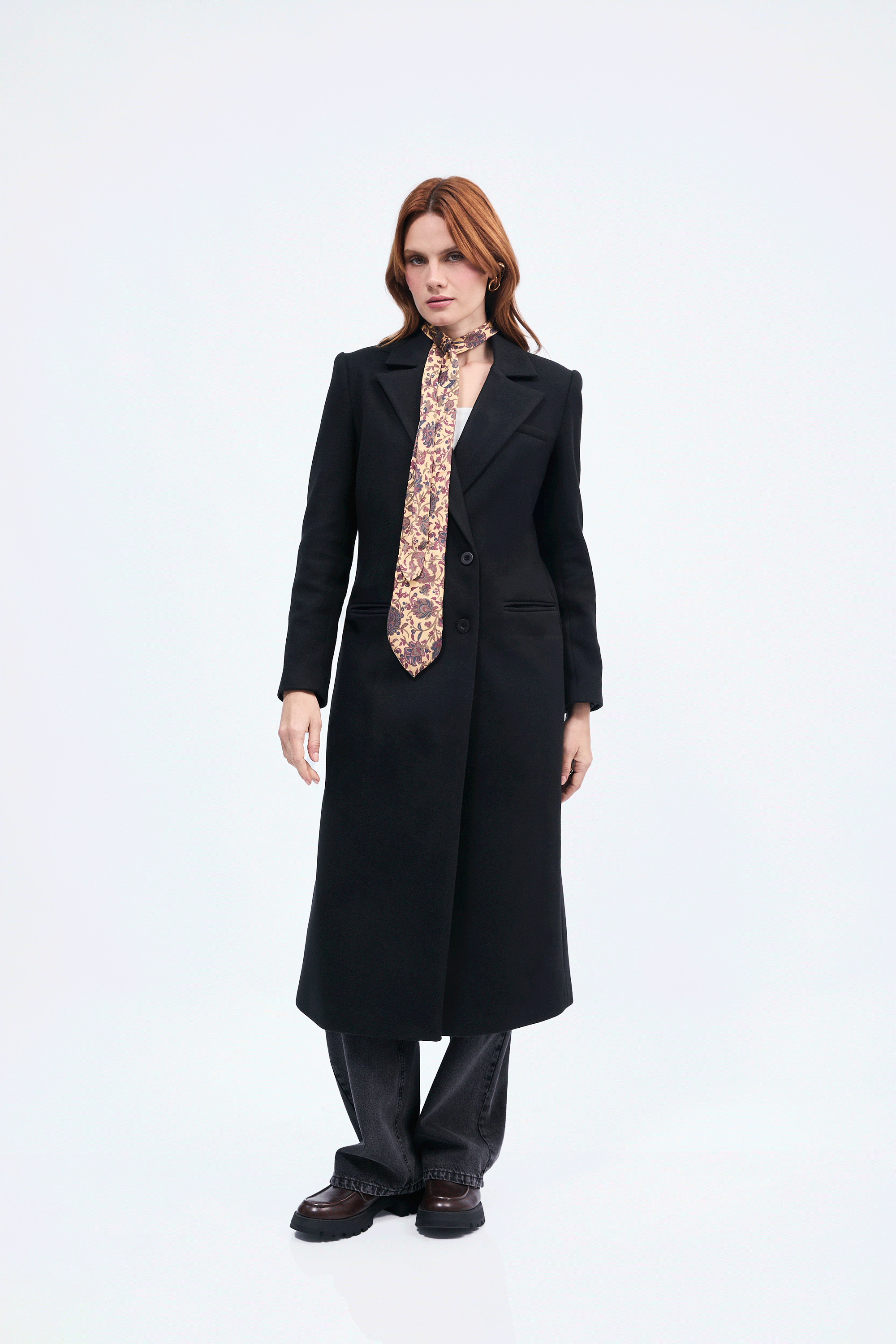 Saco Cameron largo con solapa y bolsillos funcionales Negro