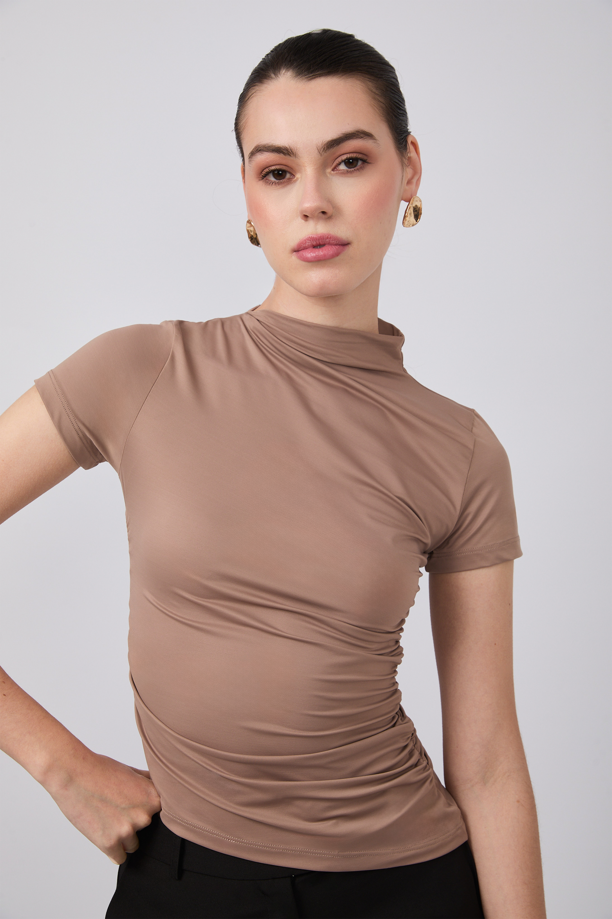 POLO ASIA ASIMÉTRICO MANGA CORTA DRAPEADO PERLA