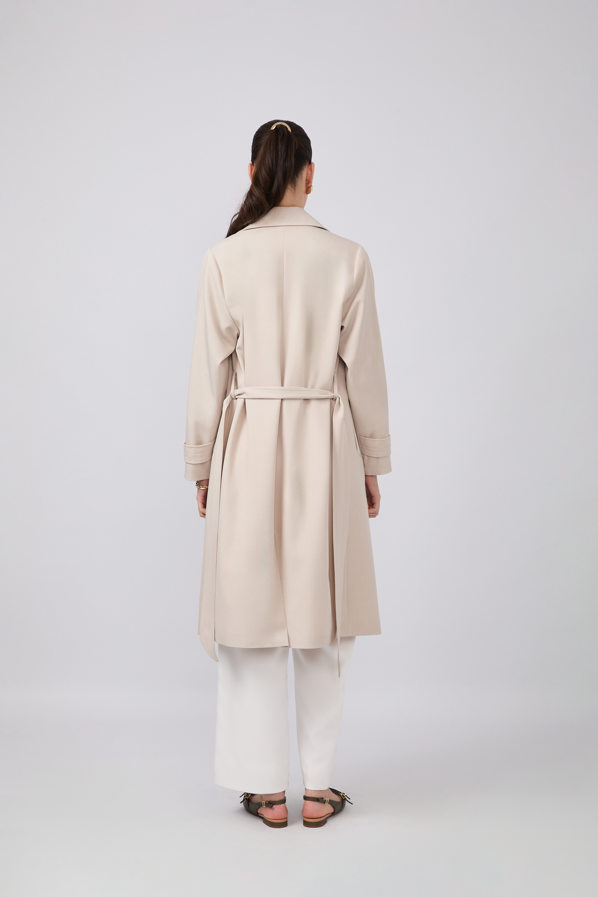Gabardina Becca larga con abertura y bolsillos funcionales Beige