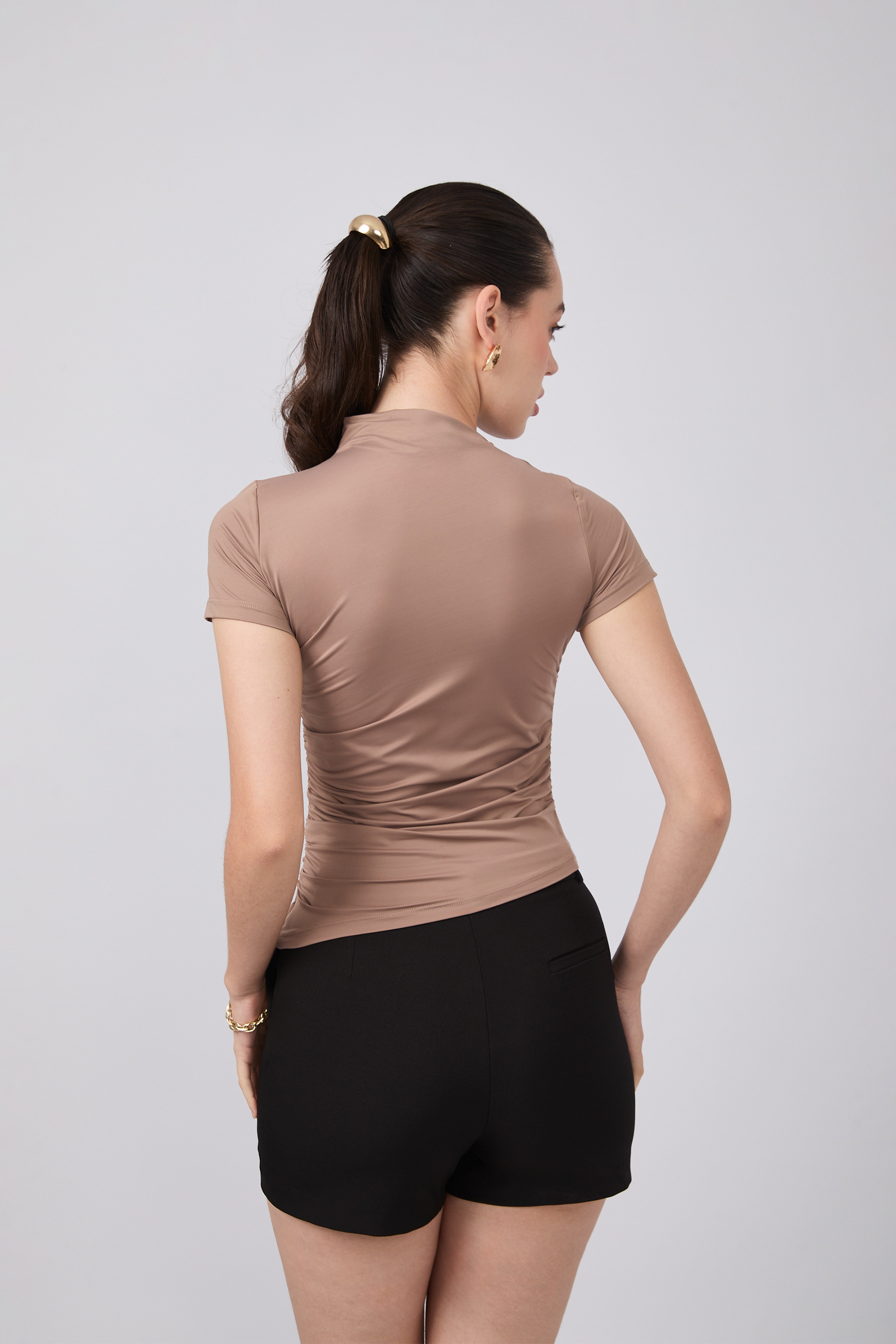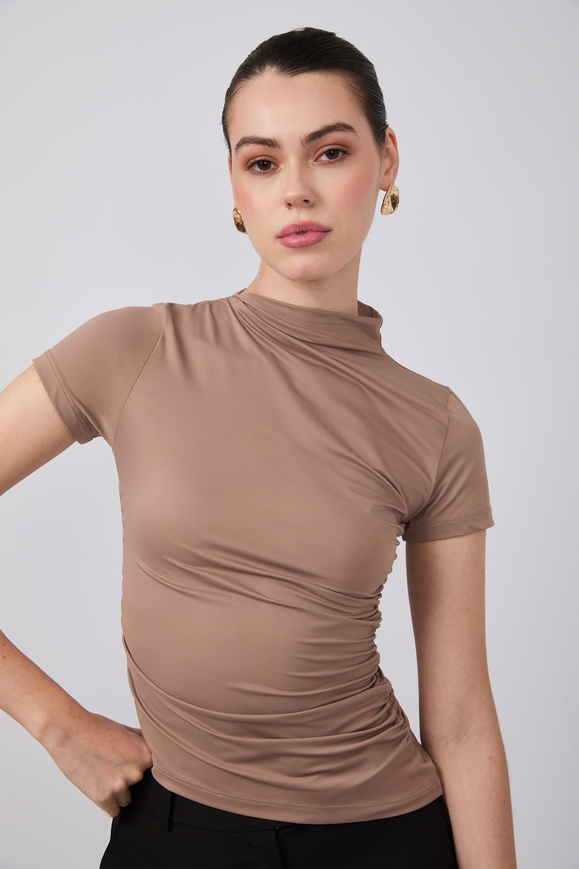 POLO ASIA ASIMÉTRICO MANGA CORTA DRAPEADO TOPO