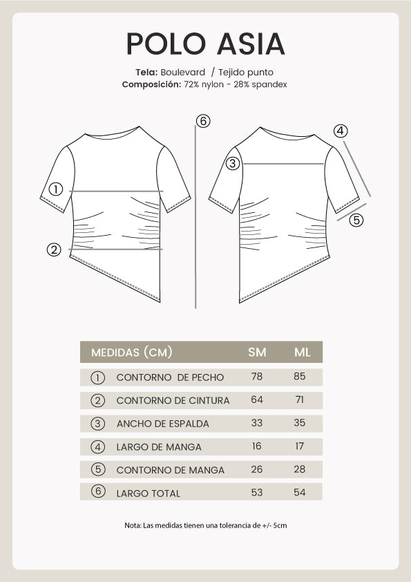 El Polo Asia redefine lo básico con un toque moderno. Su diseño asimétrico y manga corta crea una silueta única que resalta la figura sin perder comodidad. Ideal para quienes buscan una prenda casual con un giro sofisticado y actual.