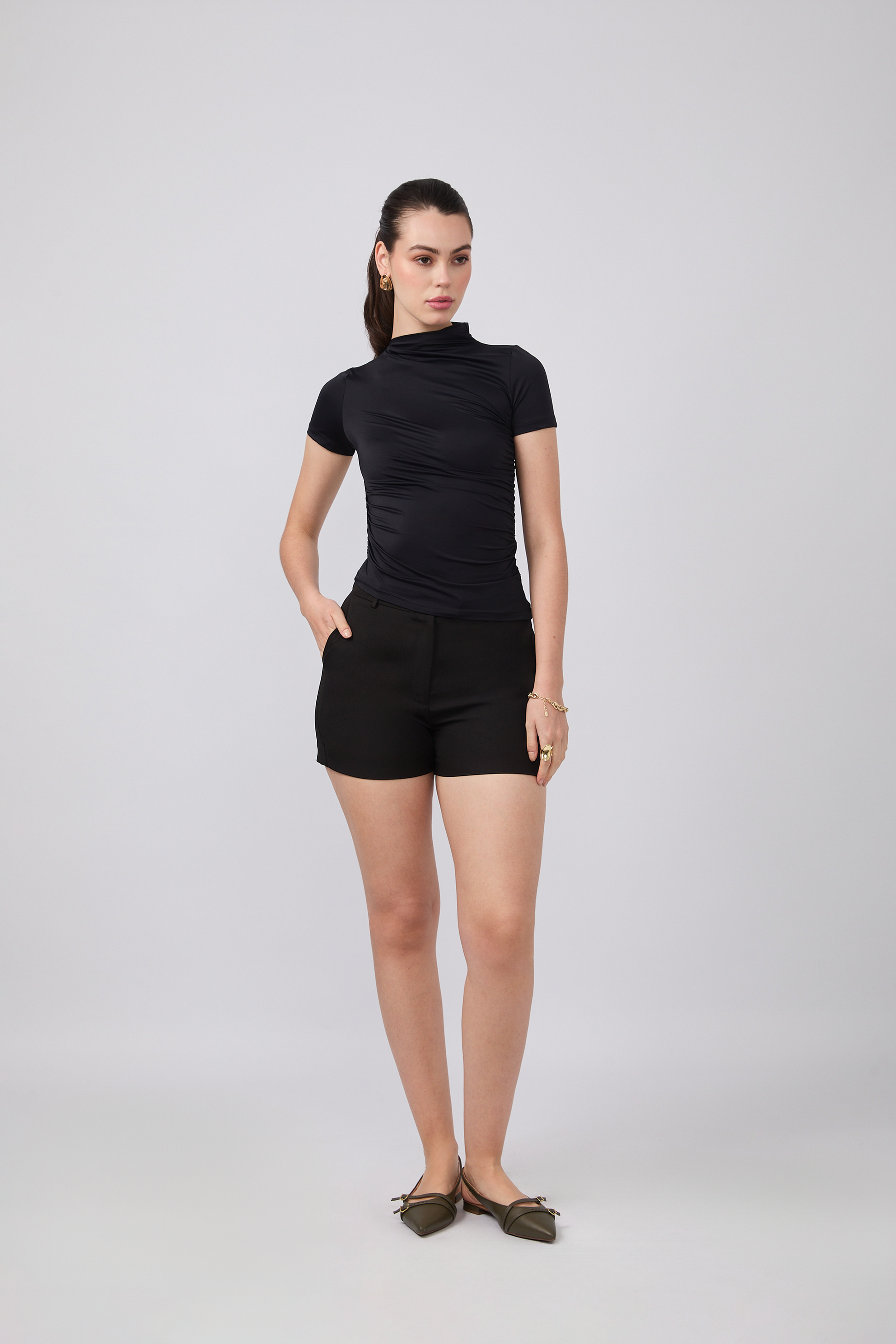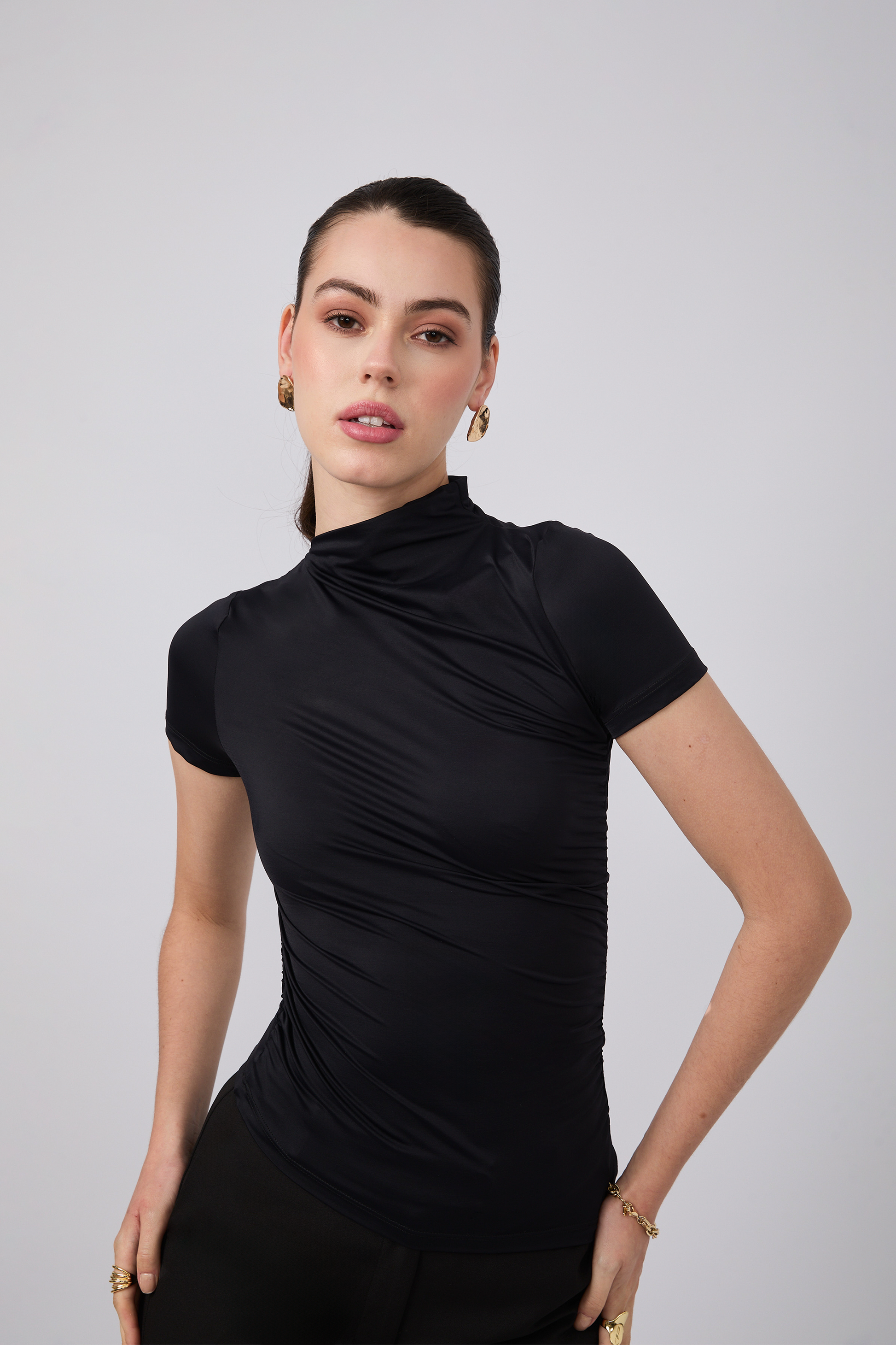 POLO ASIA ASIMÉTRICO MANGA CORTA DRAPEADO NEGRO