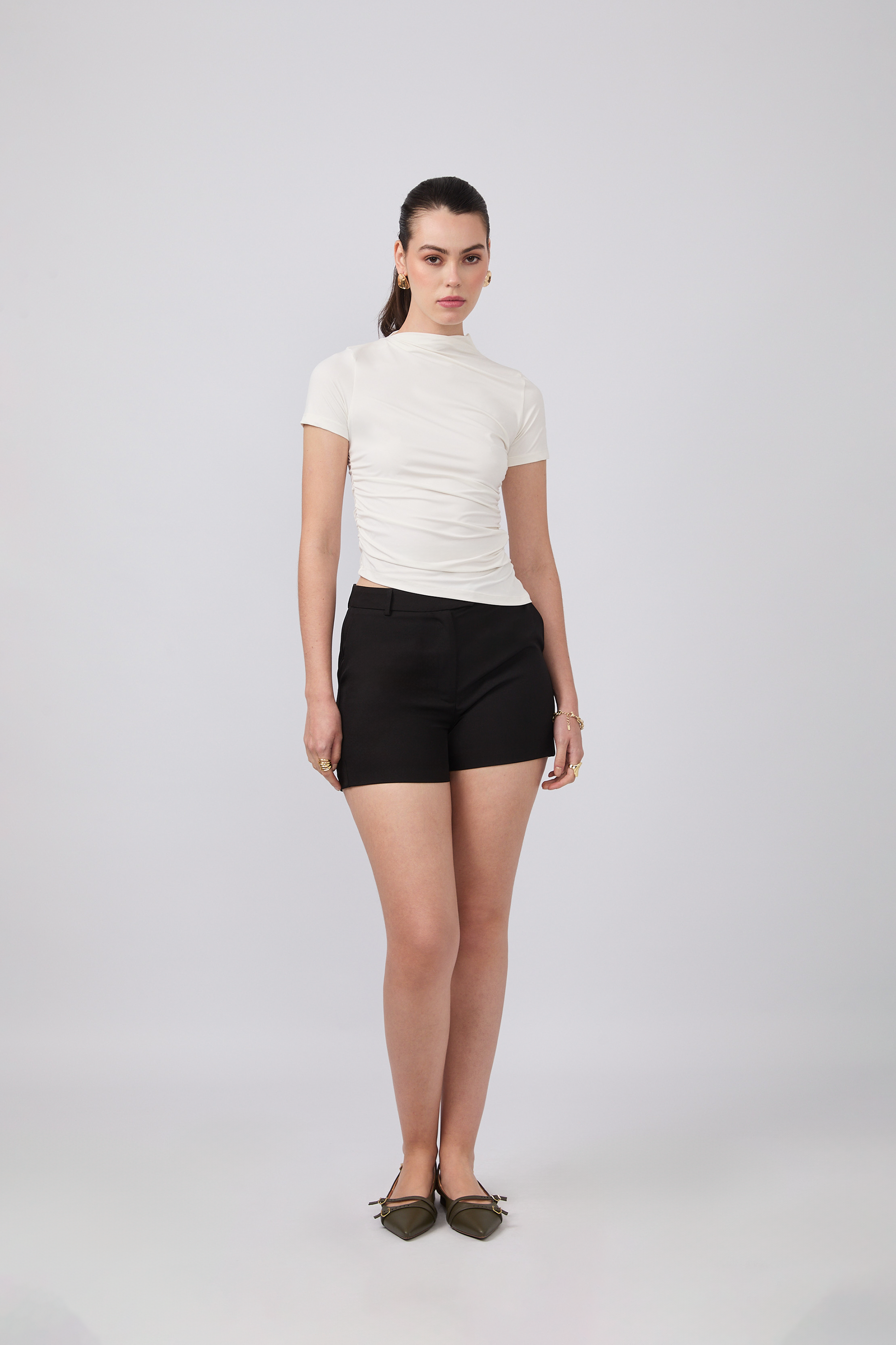 POLO ASIA ASIMÉTRICO MANGA CORTA DRAPEADO PERLA