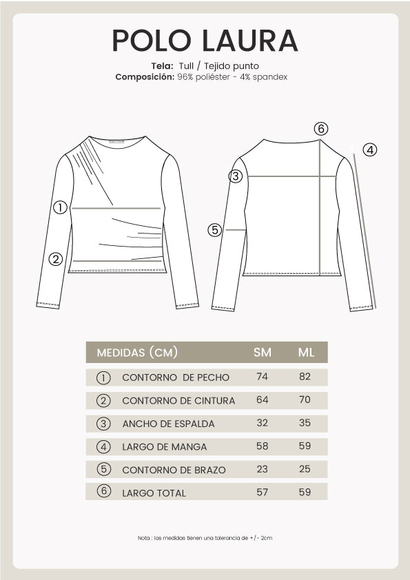 Polo manga larga con fruncido en el hombro y en la cintura.