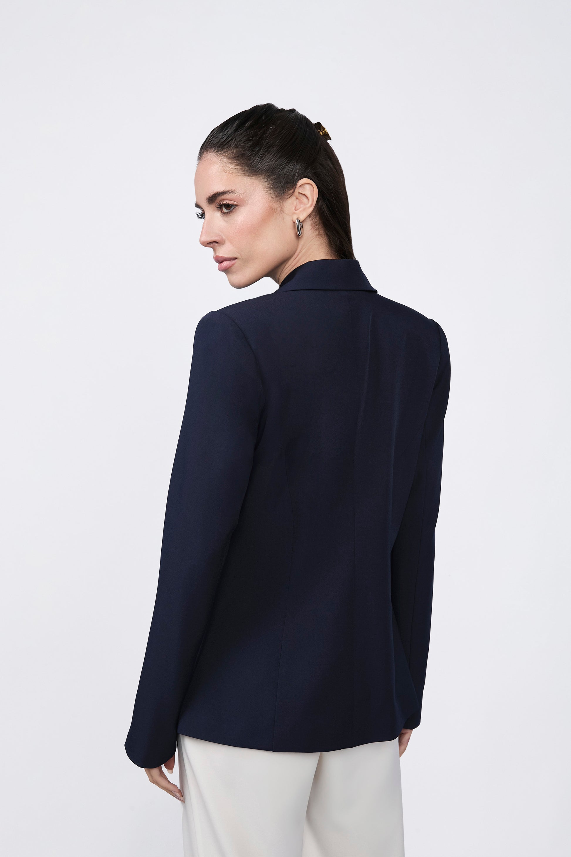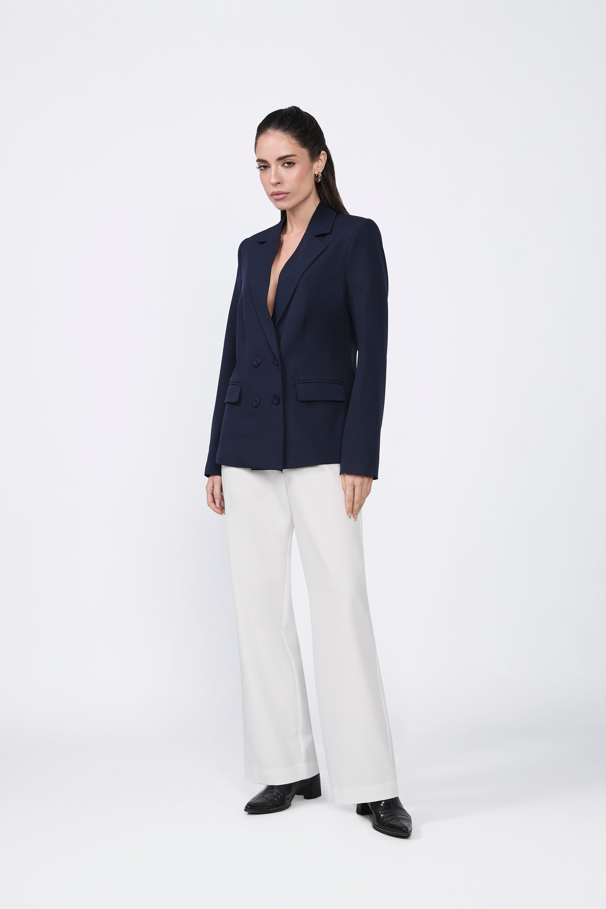 Blazer Daphne cruzado con solapa y bolsillos marino