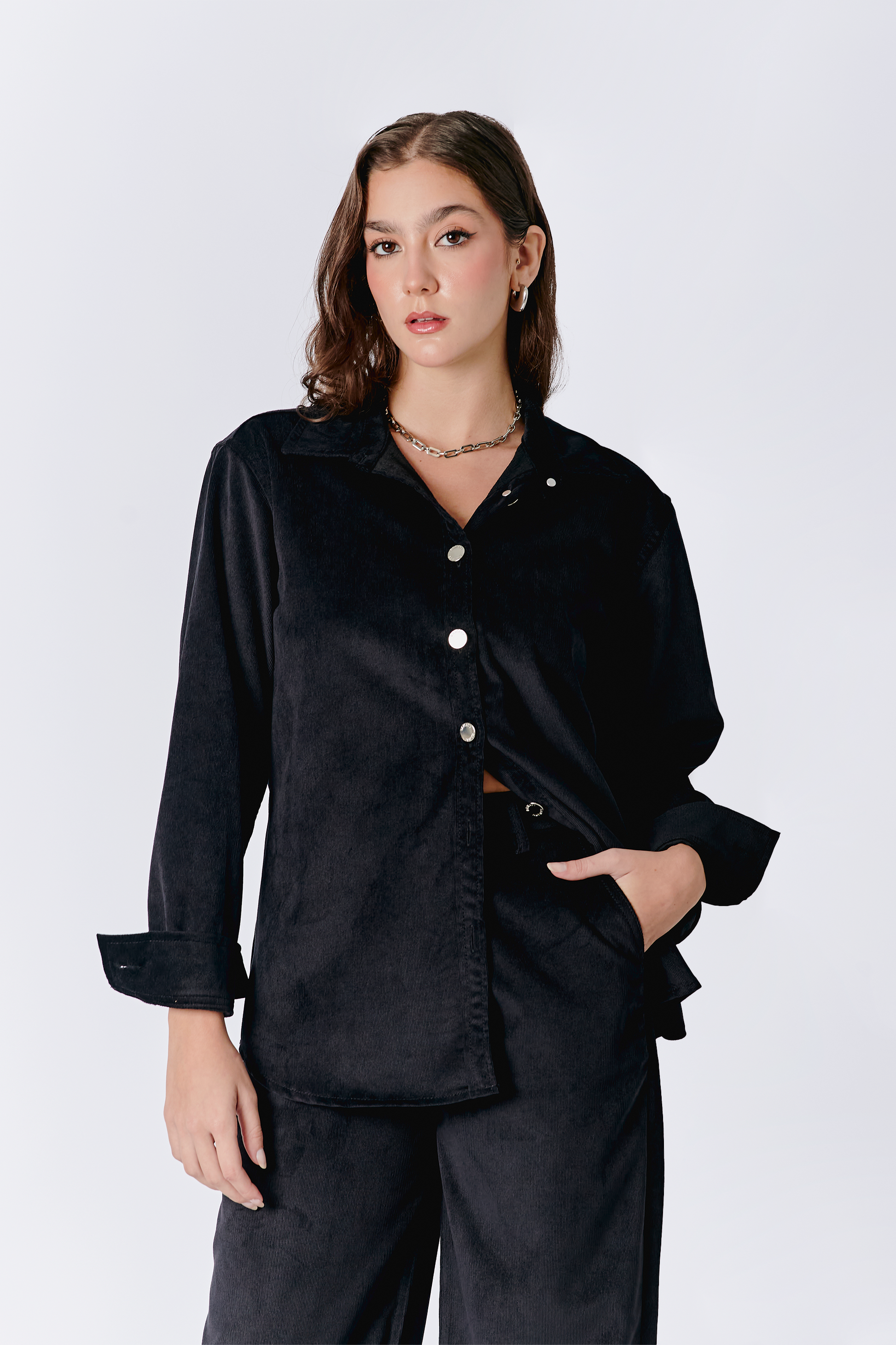 CAMISA THAIS DE CORDUROY MANGA LARGA NEGRO