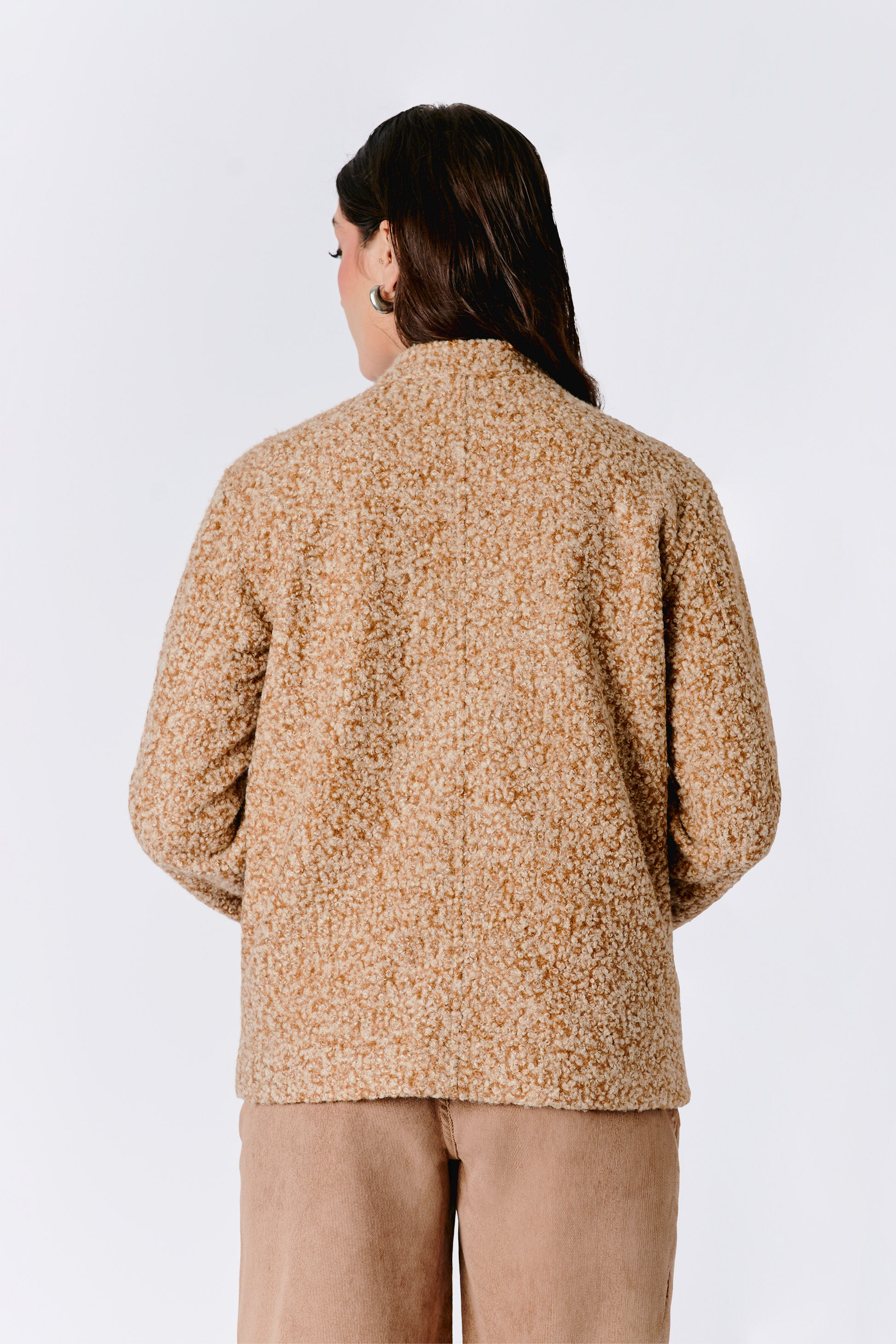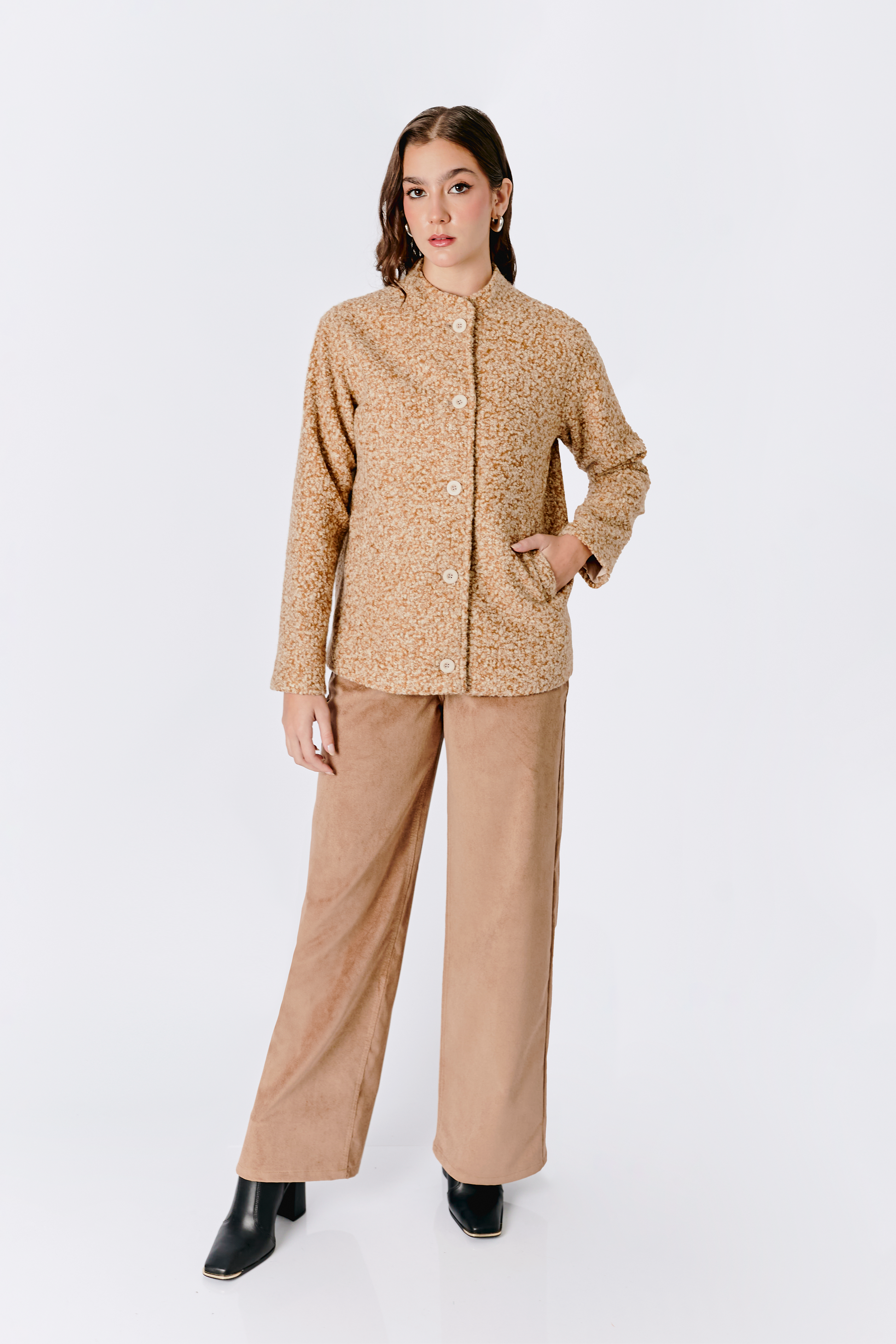 Confeccionada en dakota 100% poliéster, su textura suave y ligera aporta abrigo sin exceso, ideal para crear capas y looks increíbles. Su silueta clásica se adapta fácilmente a distintos cuerpos y estilos, convirtiéndola en una prenda imprescindible para esta temporada.