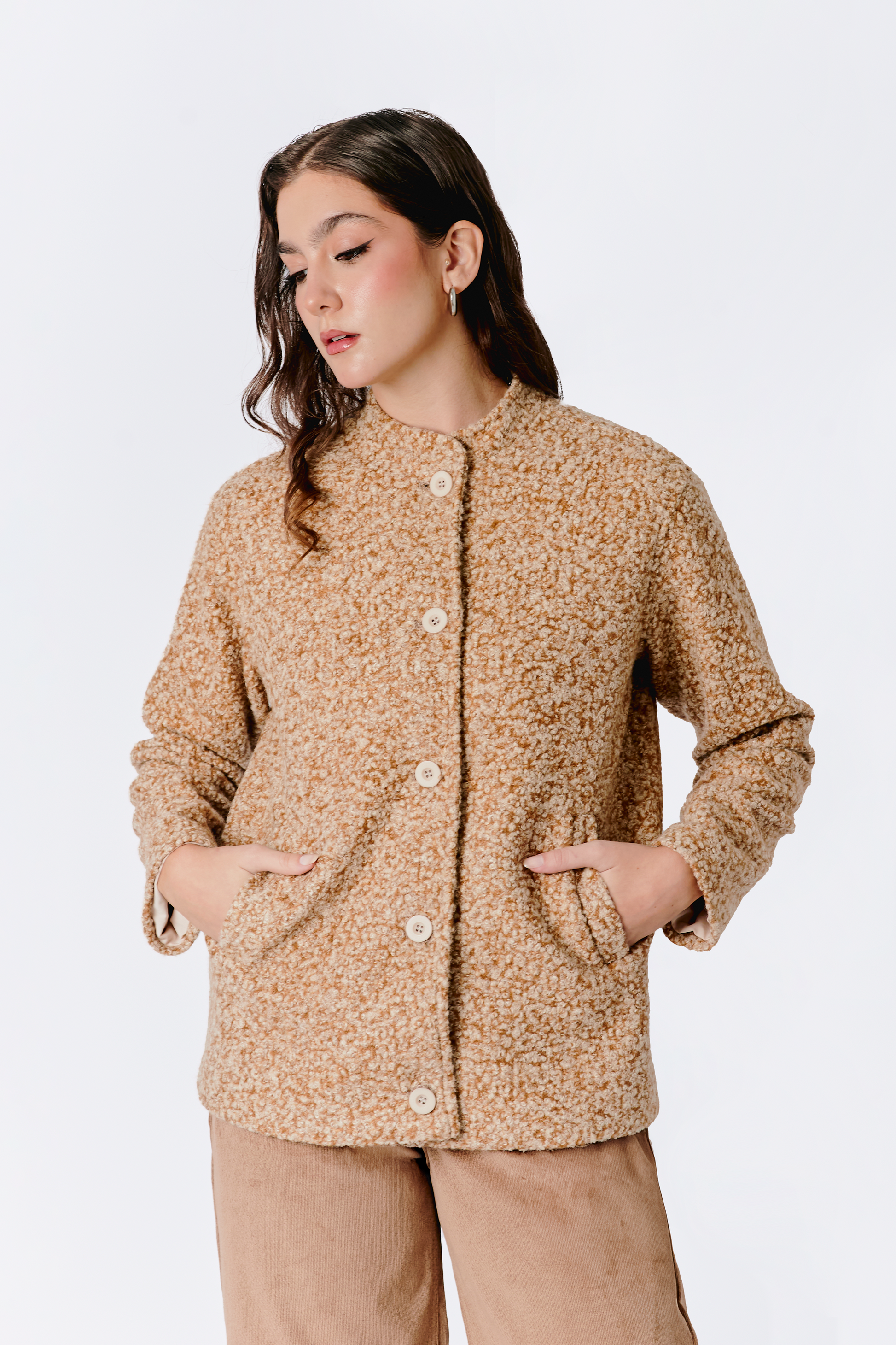CASACA OSLO CON BOLSILLOS LATERALES Y BOTONES CAMEL