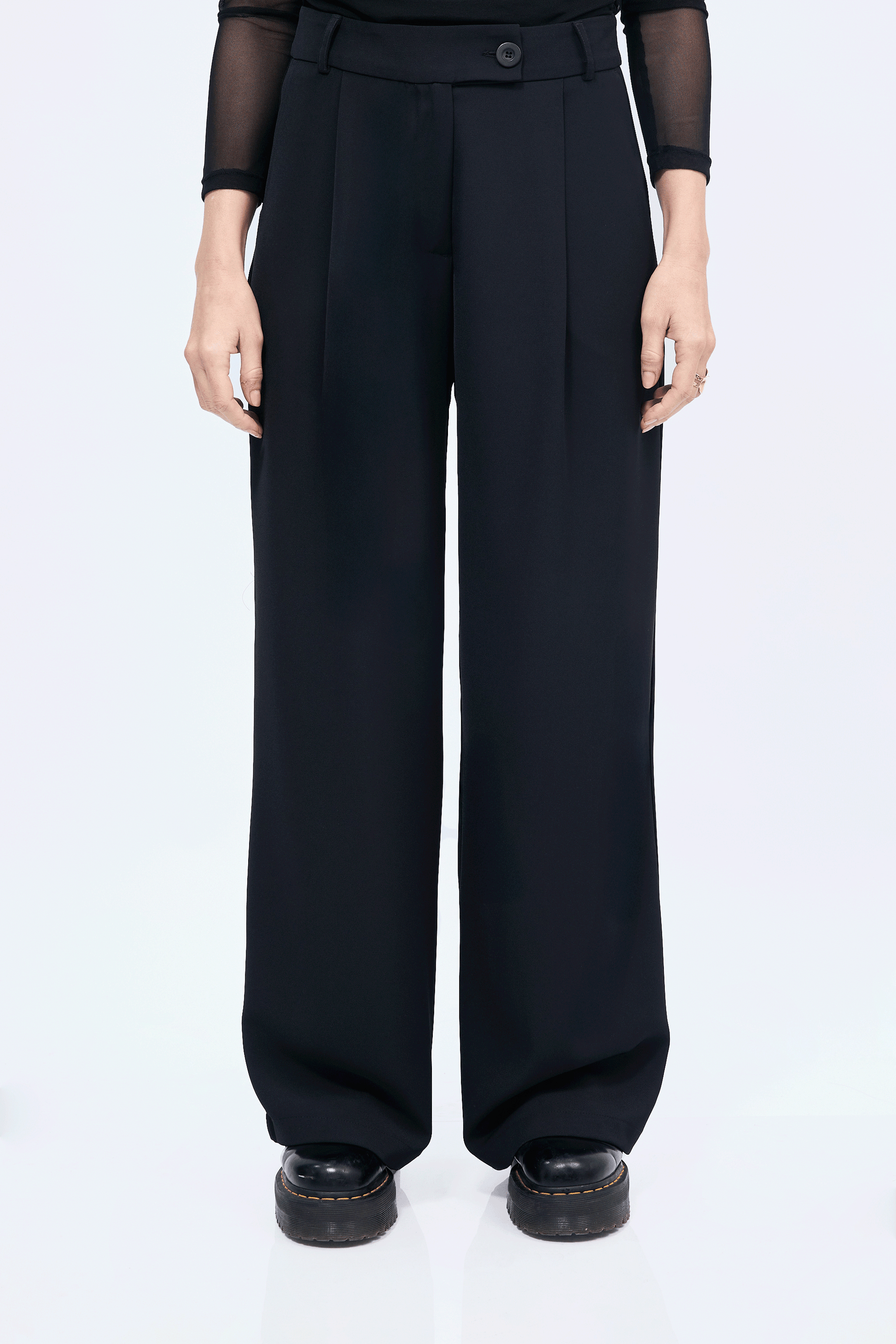 Pantalón Paris semi palazo con pinzas y bolsillos Negro