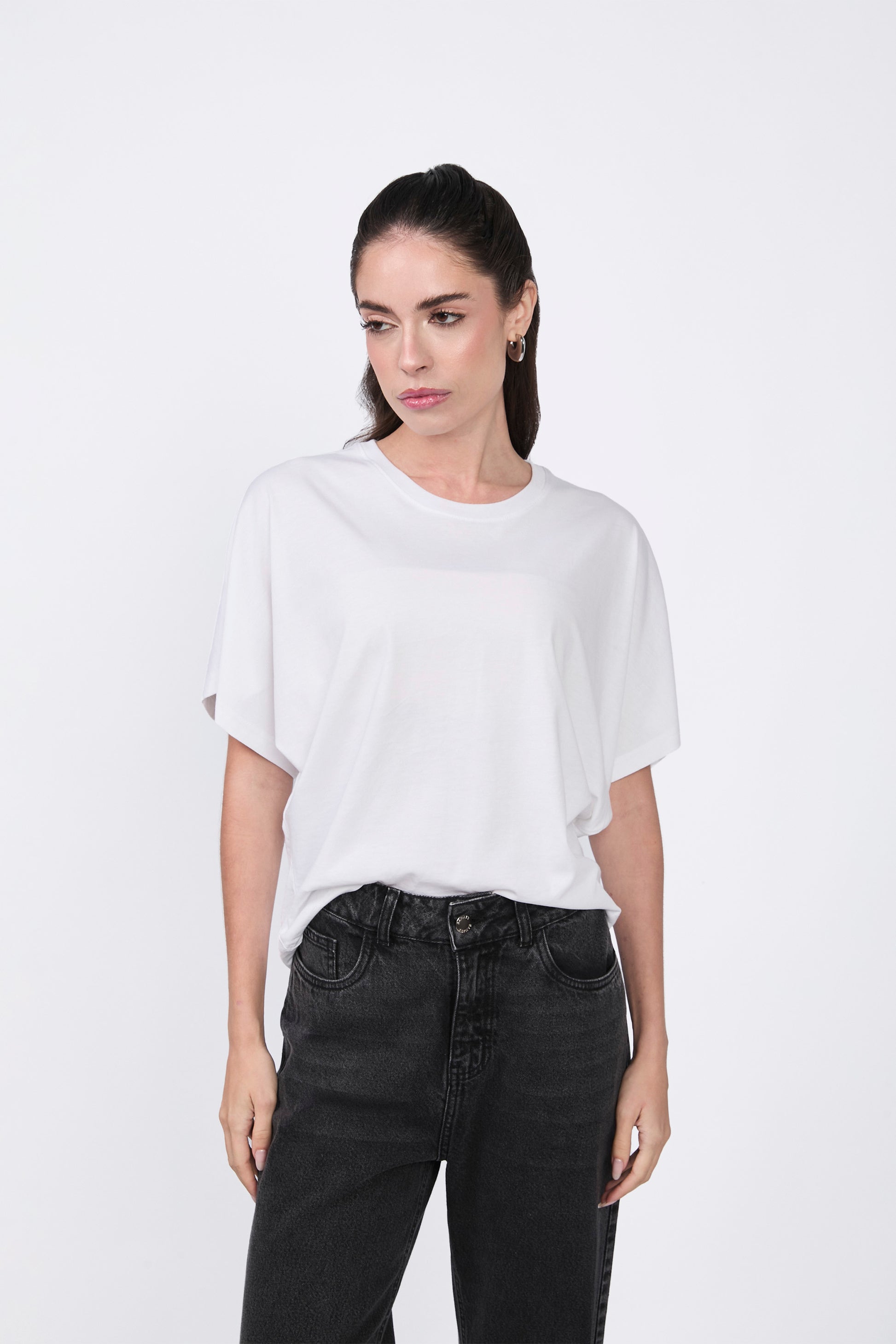 El Polo Roxanne es una pieza esencial con carácter. Su cuello redondo y mangas tipo murciélago le aportan una silueta relajada y estilizada, perfecta para quienes valoran la comodidad sin renunciar al diseño. Su estructura amplia fluye con el cuerpo, brindando libertad de movimiento y un look fresco y natural.
