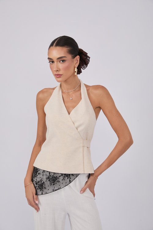 TOP HALTER DE ALGODÓN CON TIRAS AJUSTABLES - OCASO